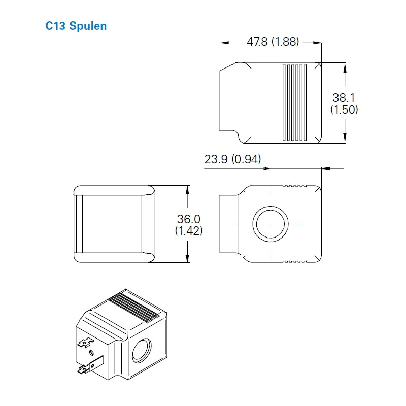 Die Spule ist ausgelegt für Dauerbetrieb bei +/- 10% der Nennspannung bei -20 °C bis +40 °C Umgebungstemperatur.
