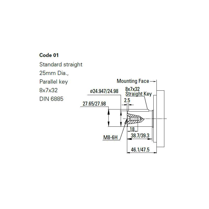 2-Lochfl. Welle zyl. Ø25mm ohne Leckanschluss